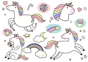 Cute Vector Unicorns And Rainbow Doodle Seamless Pattern